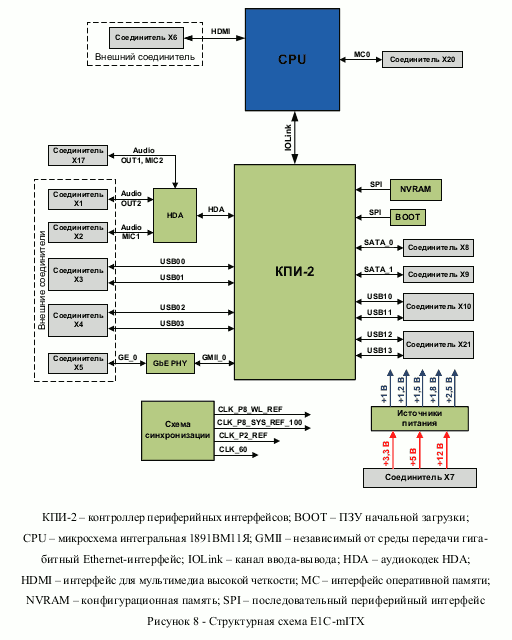 Вычислительный модуль E1C-mITX является материнской платой формата Mini-ITX — системной панелью, предназначенной для функционирования в составе автоматизированных рабочих мест, унифицированных комплексов средств автоматизации. Имеет стандартный вход питания ATX 24-pin.