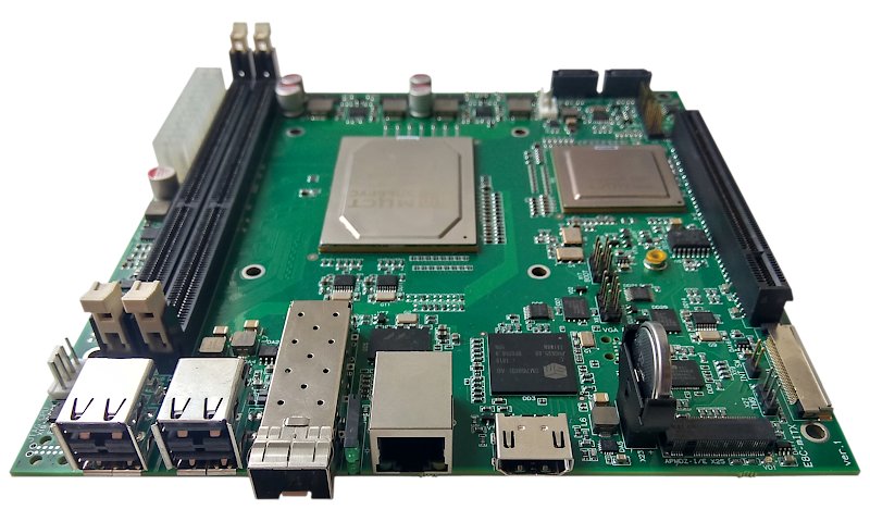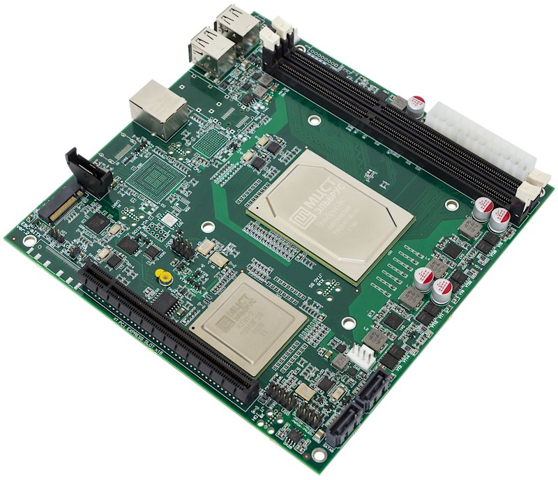 Материнская плата в форм-факторе Mini-ITX с установленным процессором Эльбрус-8С и южным мостом КПИ-2 для создания компактных персональных компьютеров, информационных терминалов и микросерверов.
